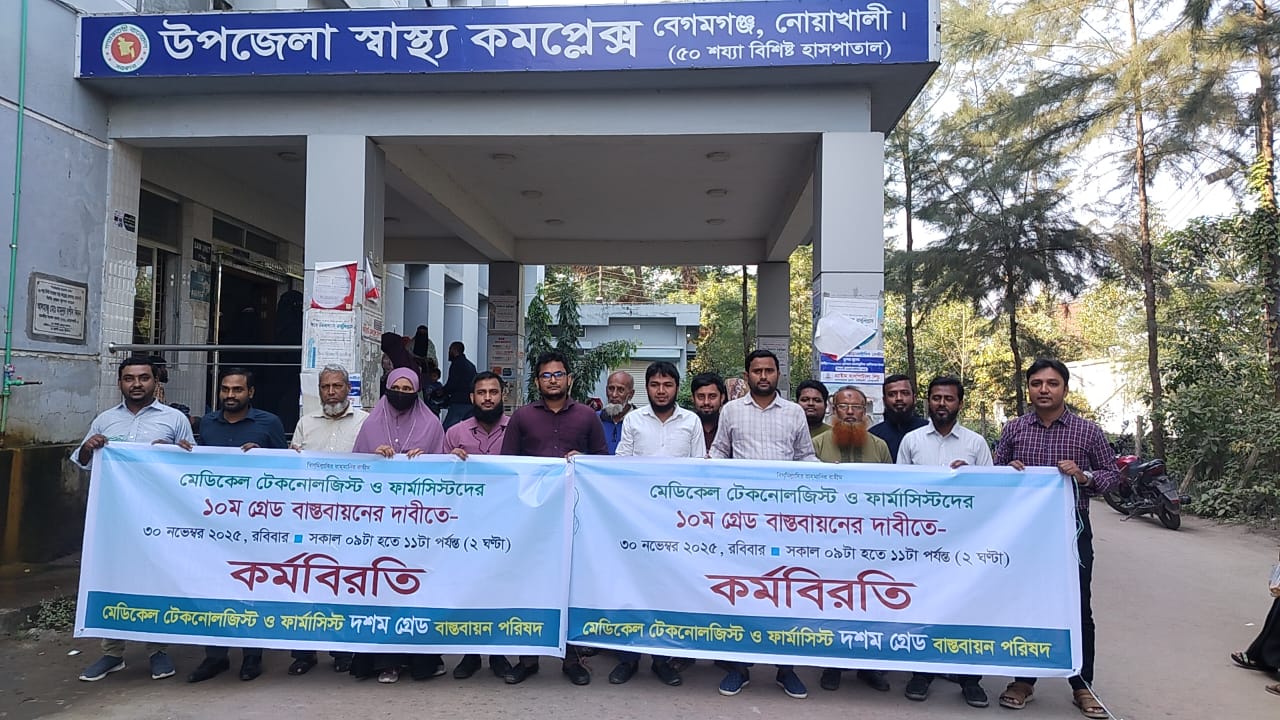 নোয়াখালীতে মেডিকেল টেকনোলজিস্ট ও ফার্মাসিস্টদের ১০ম গ্রেড বাস্তবায়নের দাবীতে ২ঘন্টা কর্মবিরতি পালন